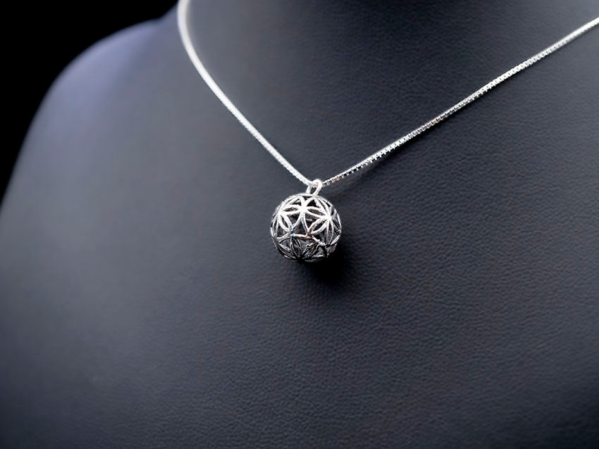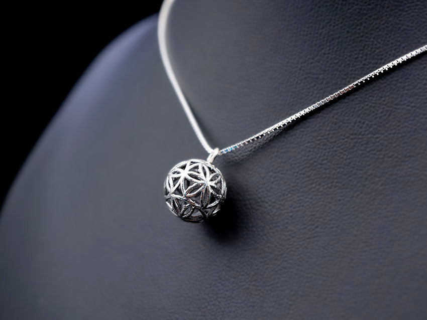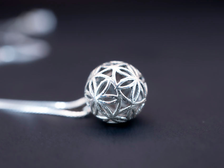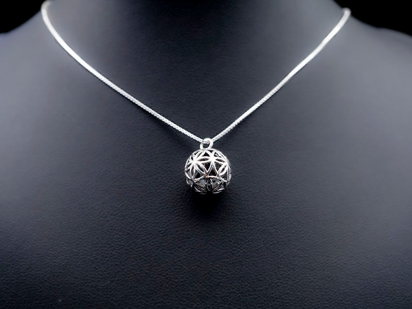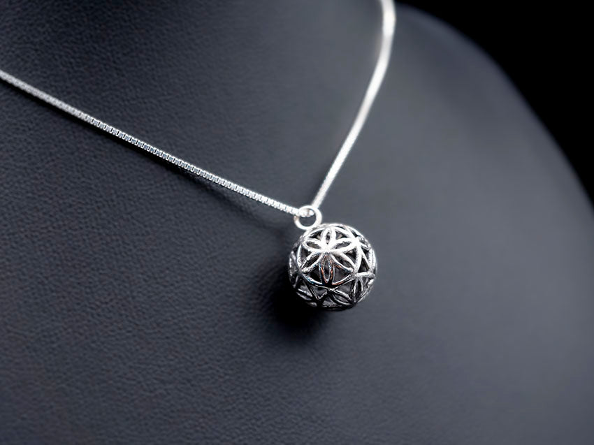 Envelop yourself in the ancient geometry of creation with this Small Flower of Life Sphere pendant, meticulously fashioned in sterling silver. Suspended on a versatile 21” adjustable chain, this pendant encapsulates the essence of the universe's interconnectedness. Let it rest near your heart, a symbolic representation of the foundational forms of space and time, believed to foster spiritual growth and manifest life's most profound mysteries.