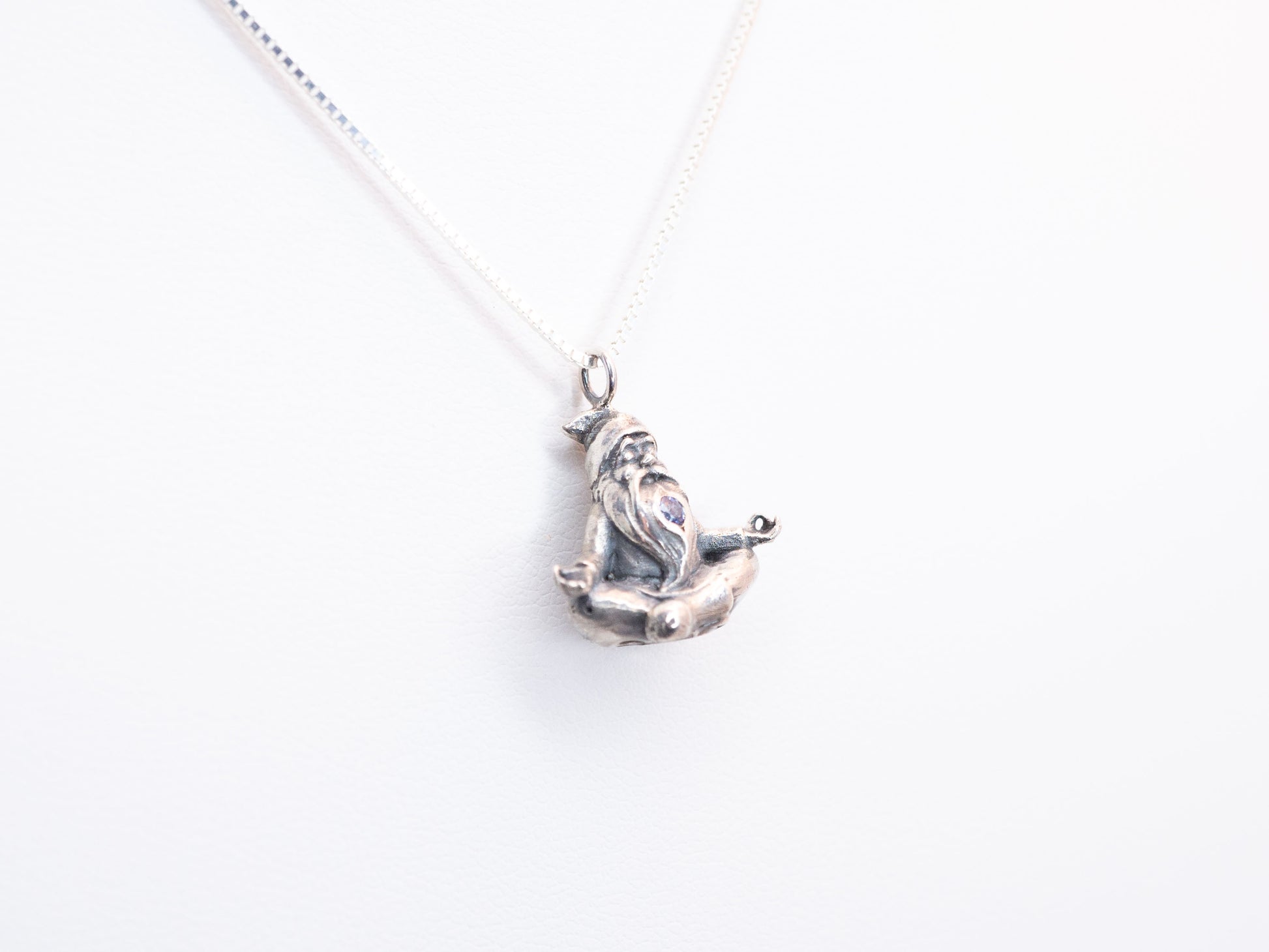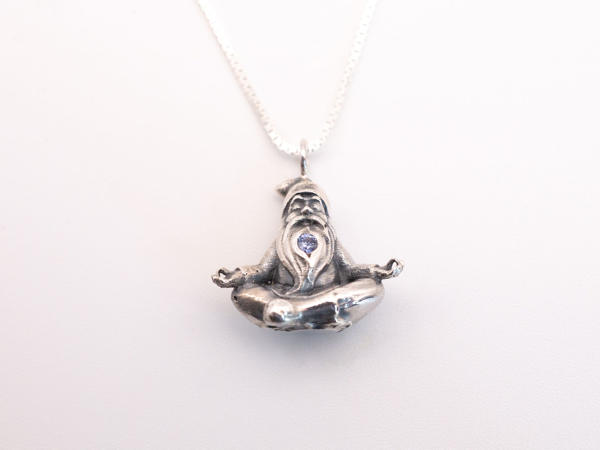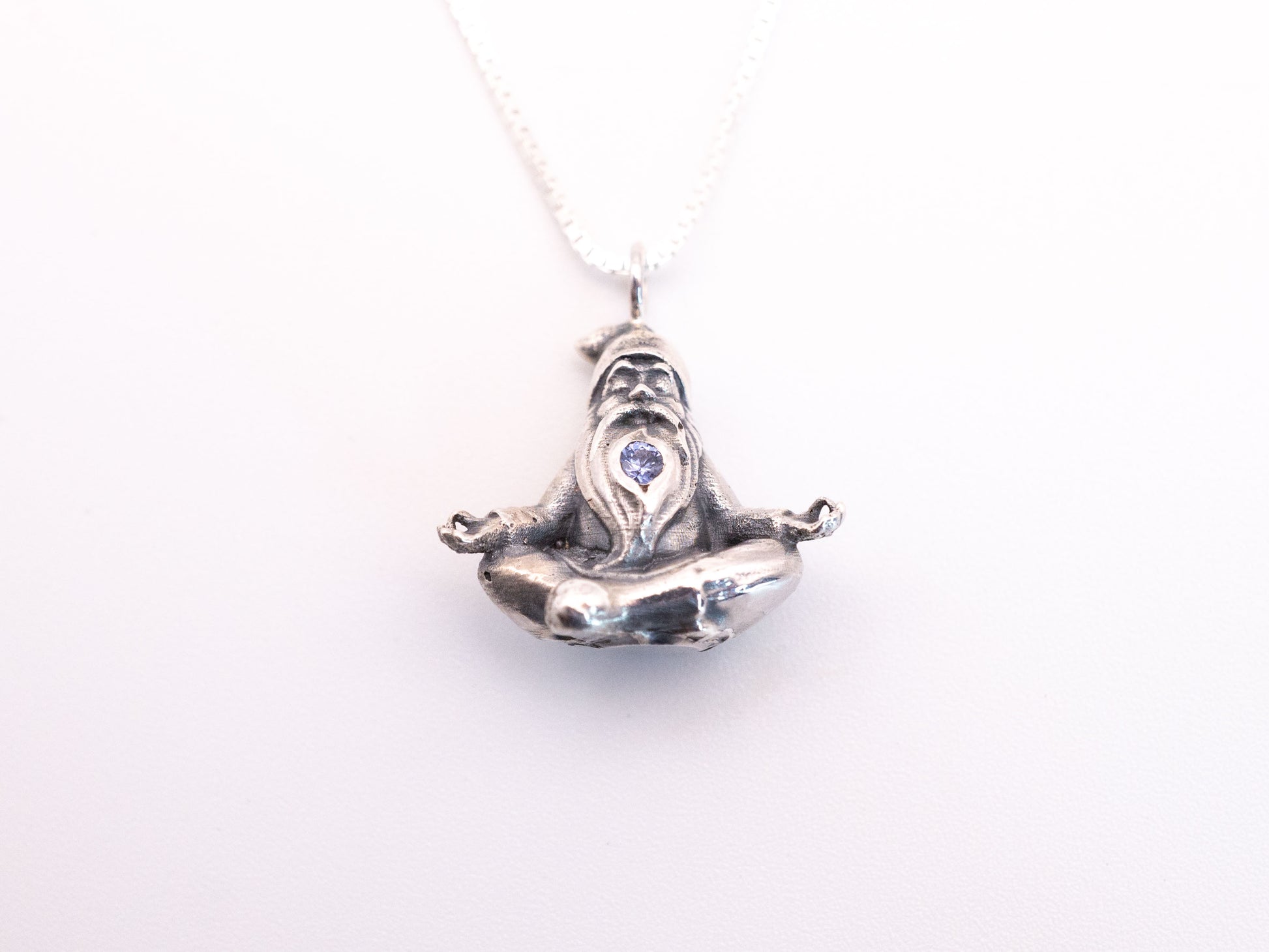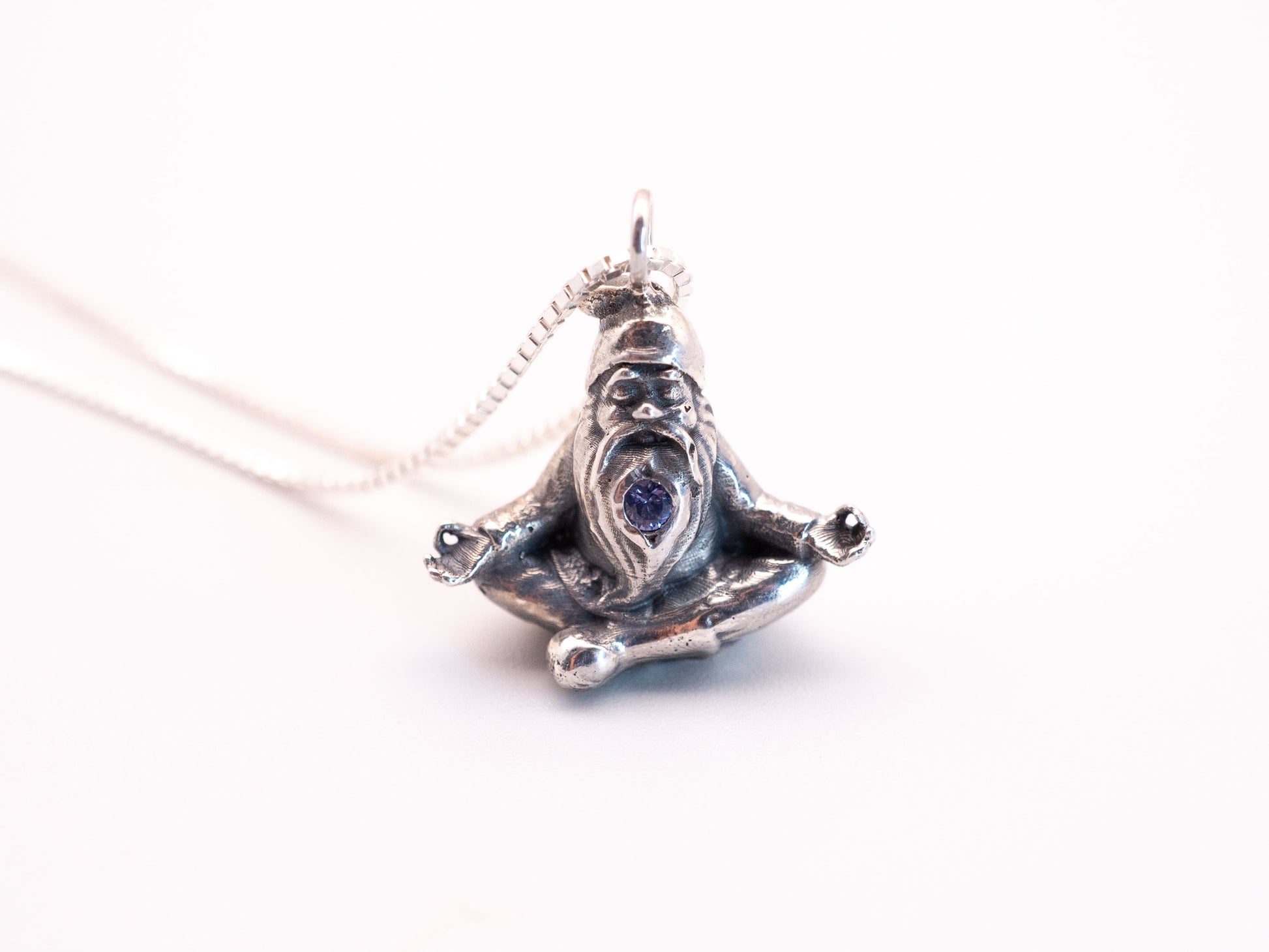 The Quiet Watcher | Meditating Gnome Pendant with Yogo Sapphire