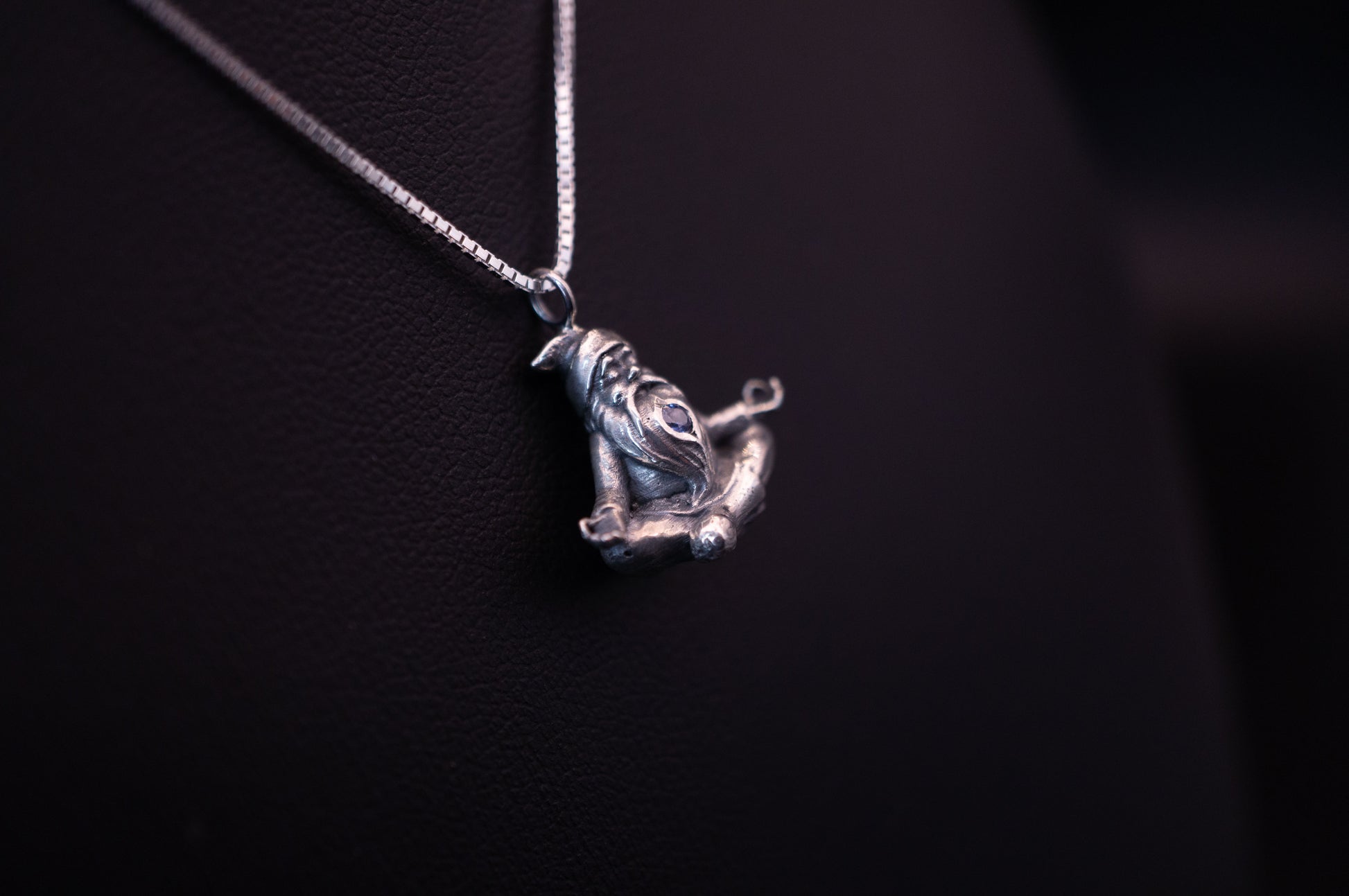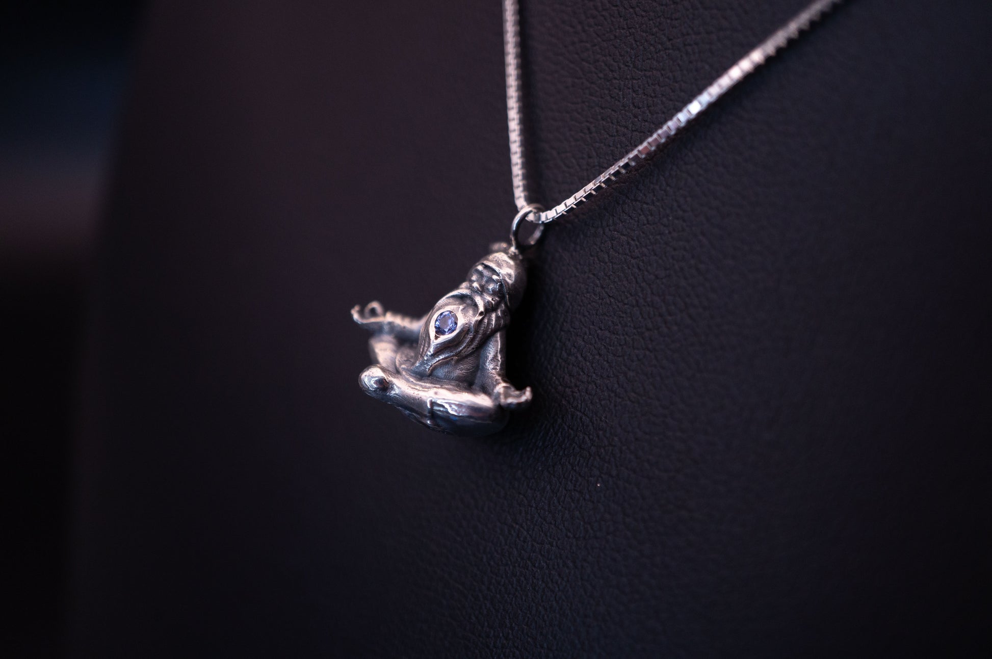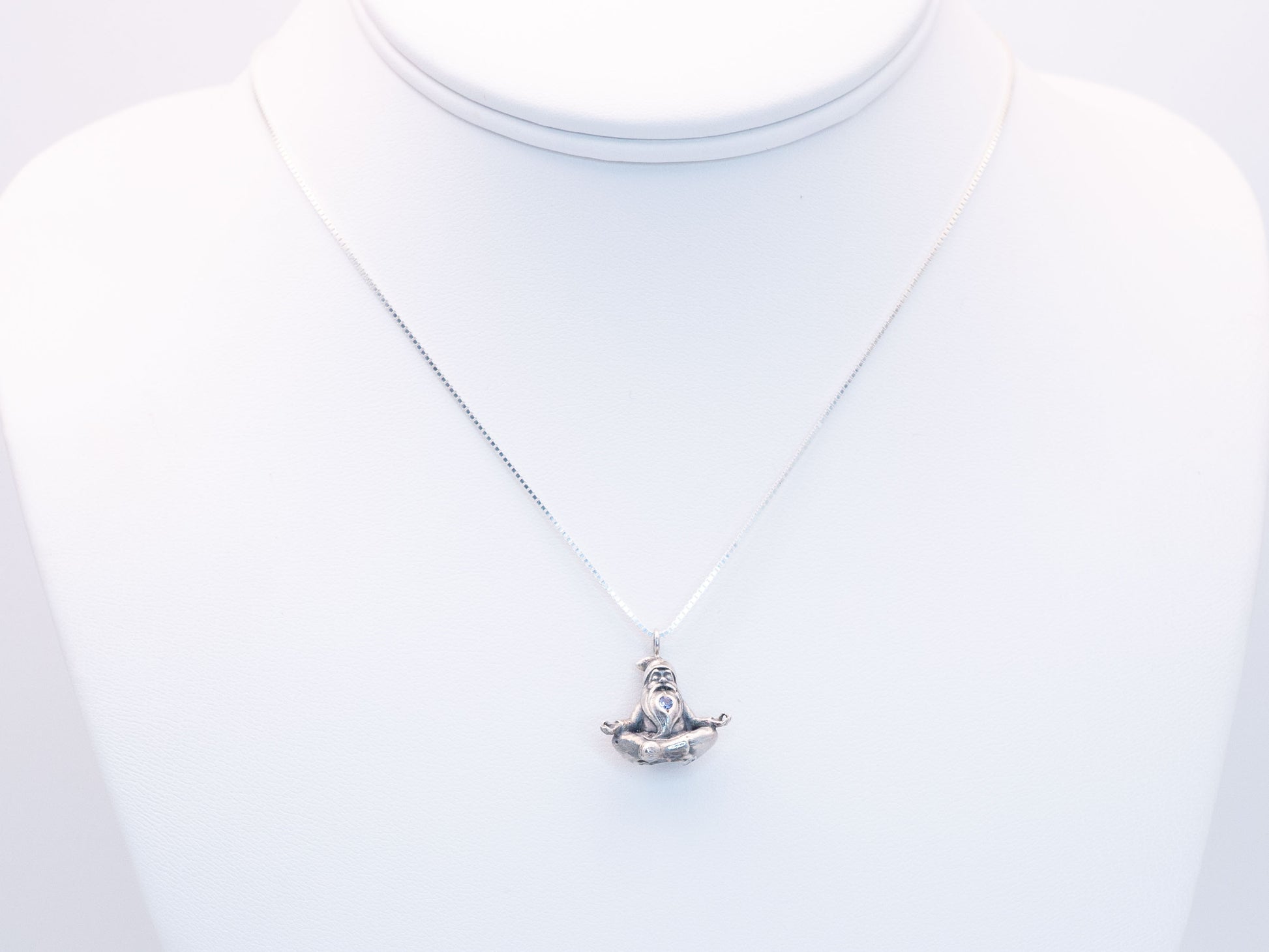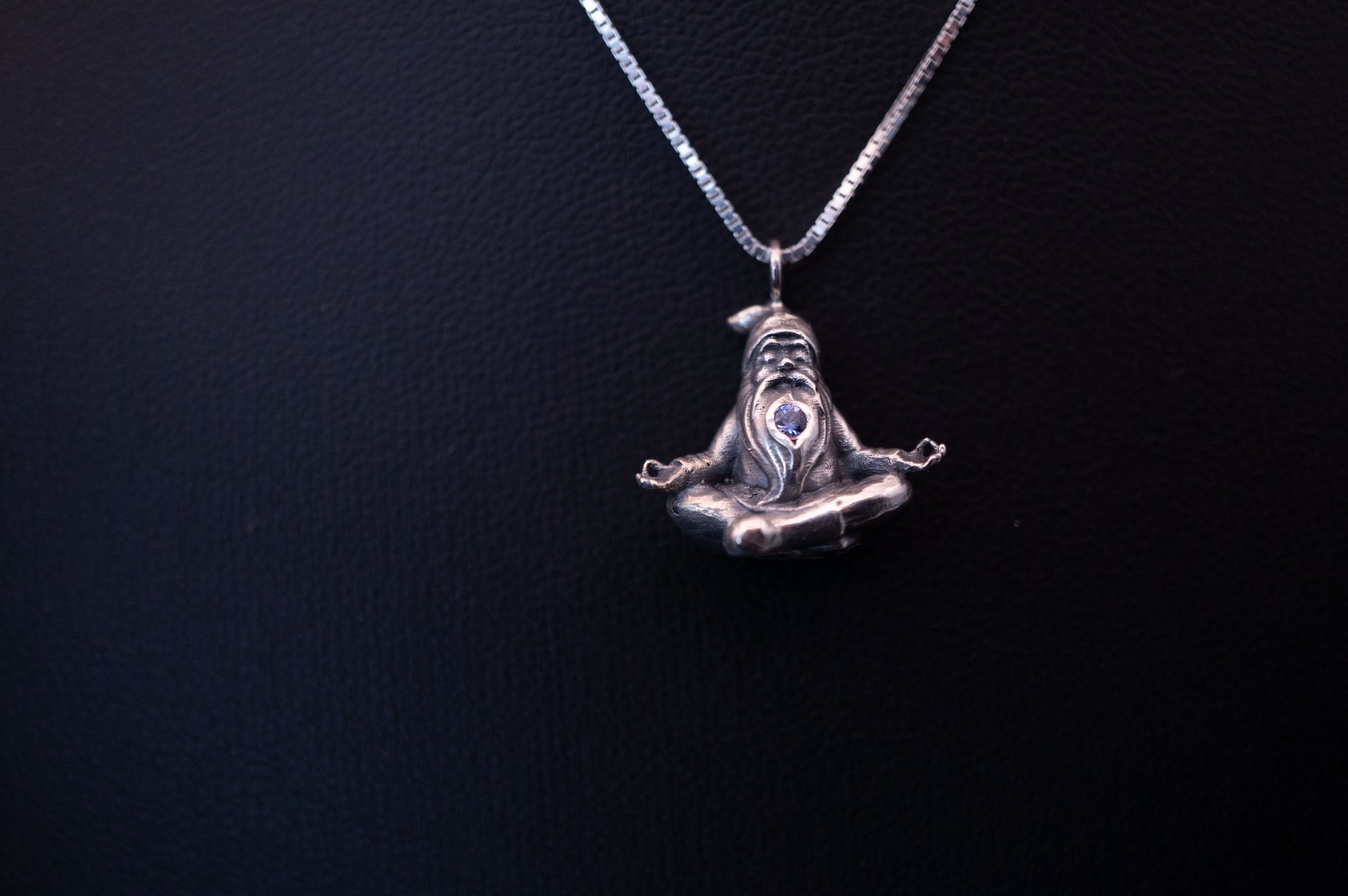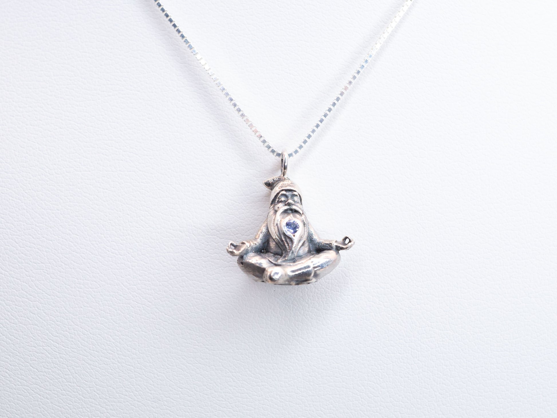The Quiet Watcher | Meditating Gnome Pendant with Yogo Sapphire