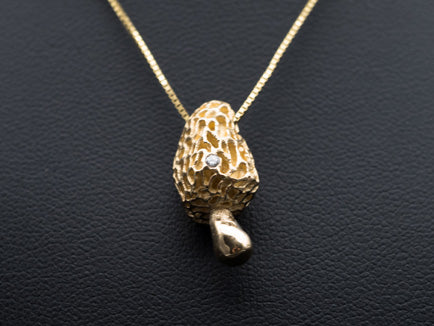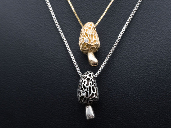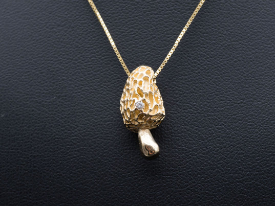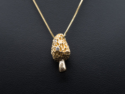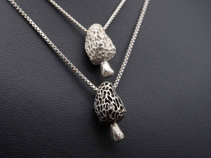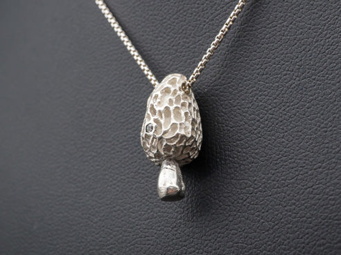 The Forest Keeps Secrets | Morel Mushroom Pendant in Silver or 14k Gold with Diamond