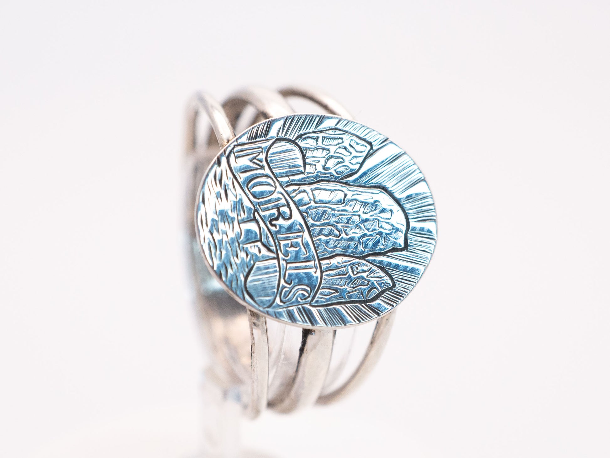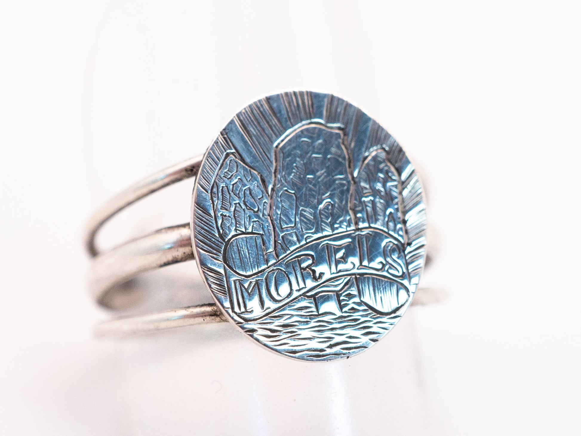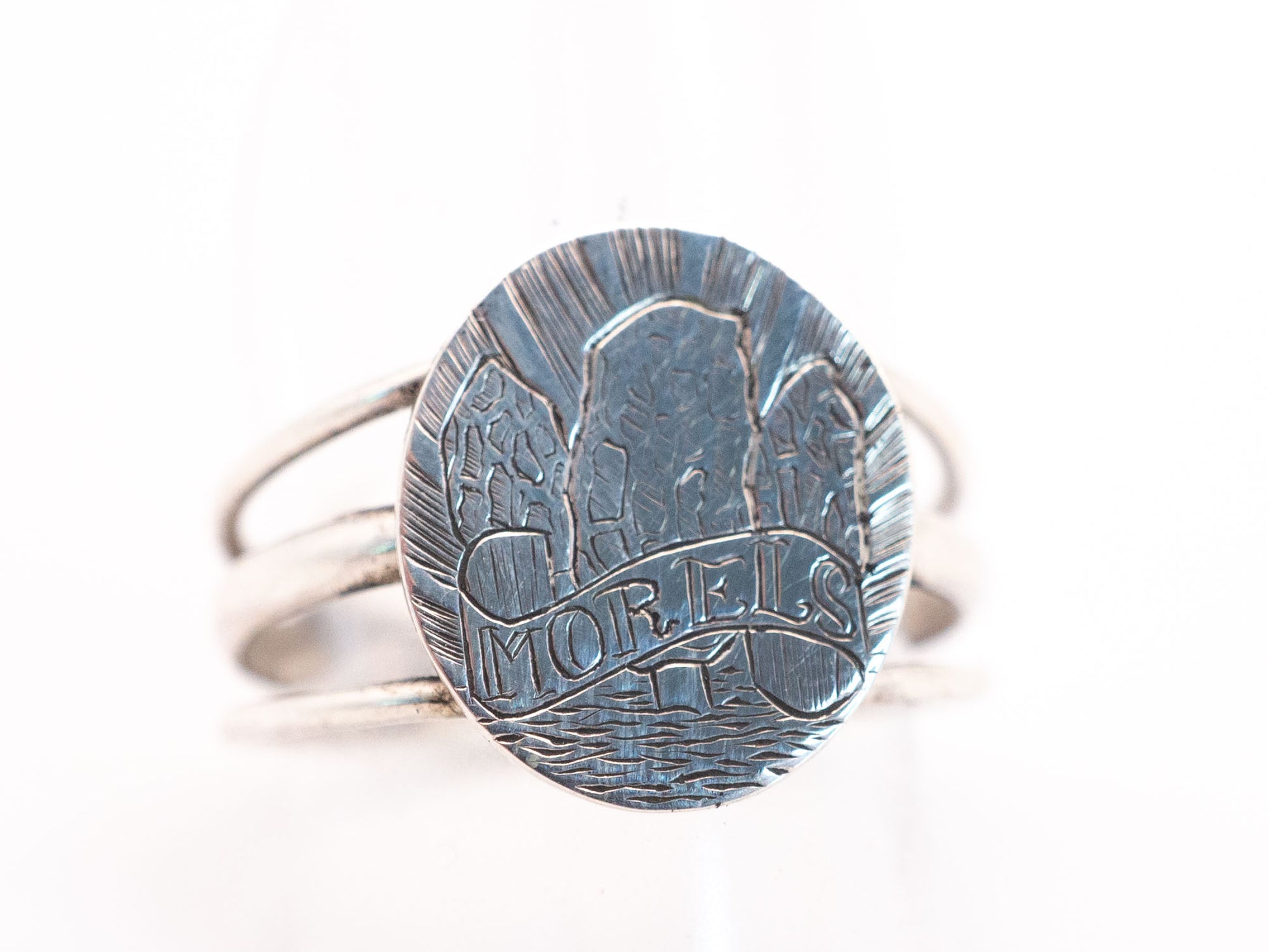 This is the third version of our well loved morel ring series. We have decided to do this version in high def, each piece is hand carved by our engraver Molly under a microscope right here in our Oregon studio. The ring portion is hand fabricated from 925 silver.