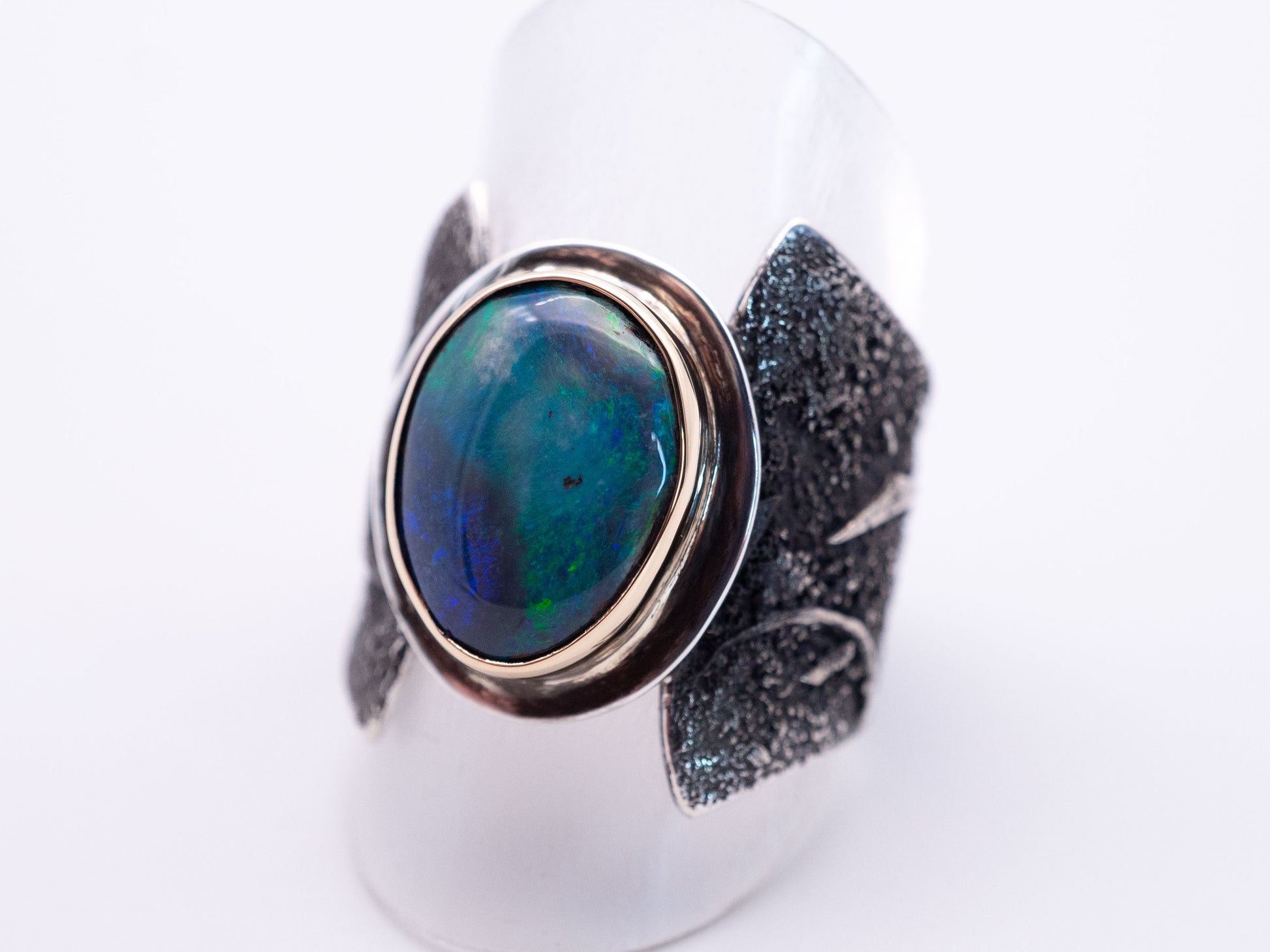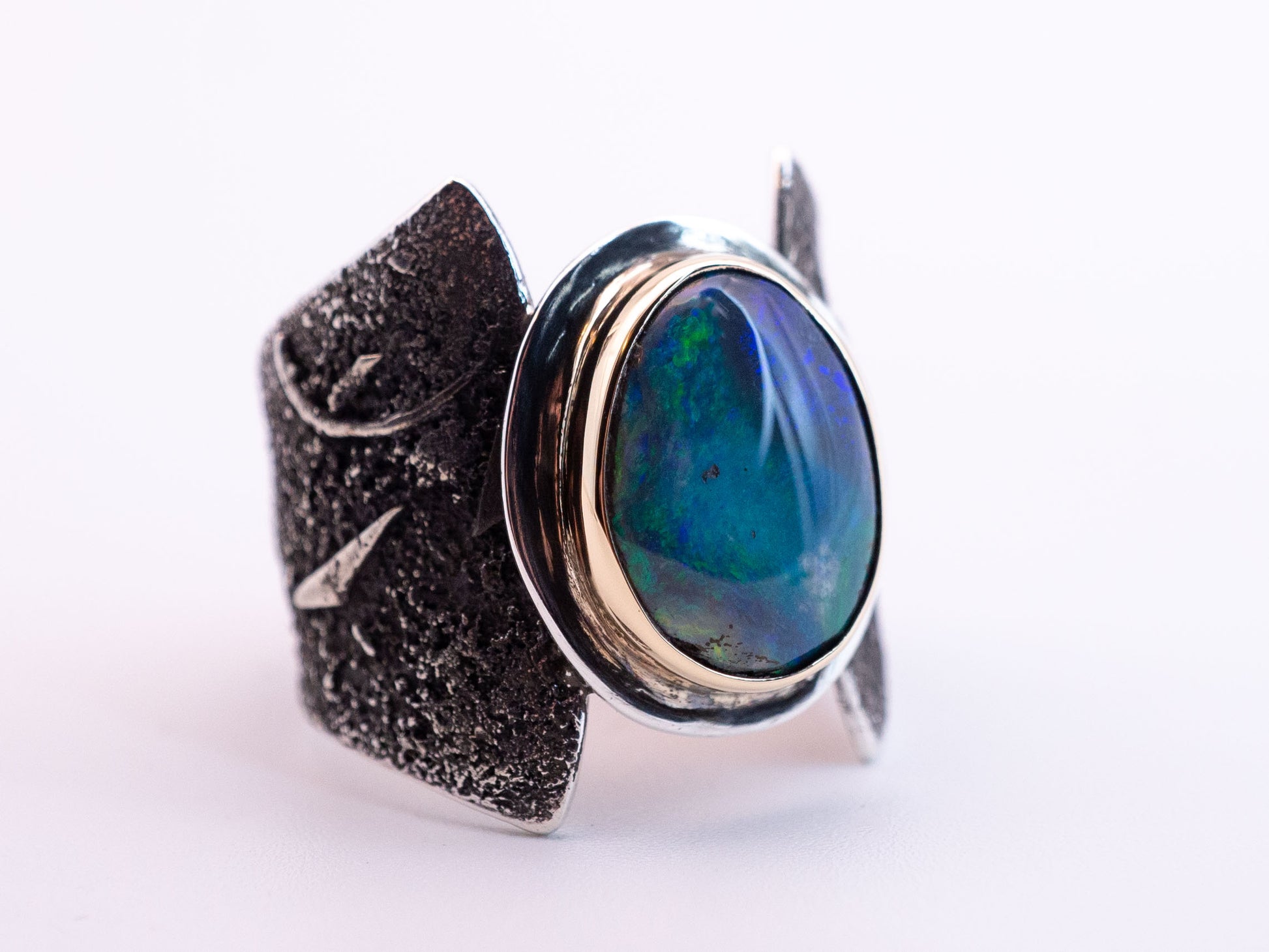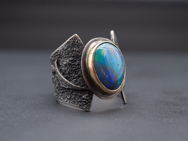 The Riftstone Ring | Abstract Lightning Ridge Opal ring