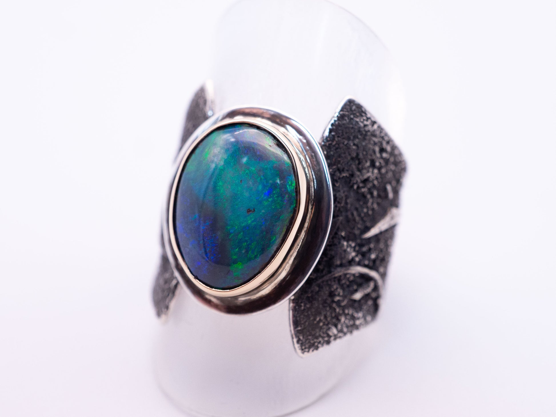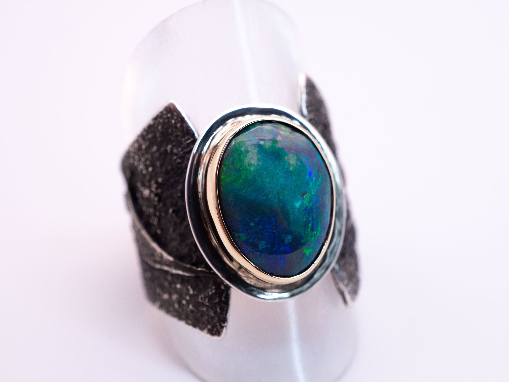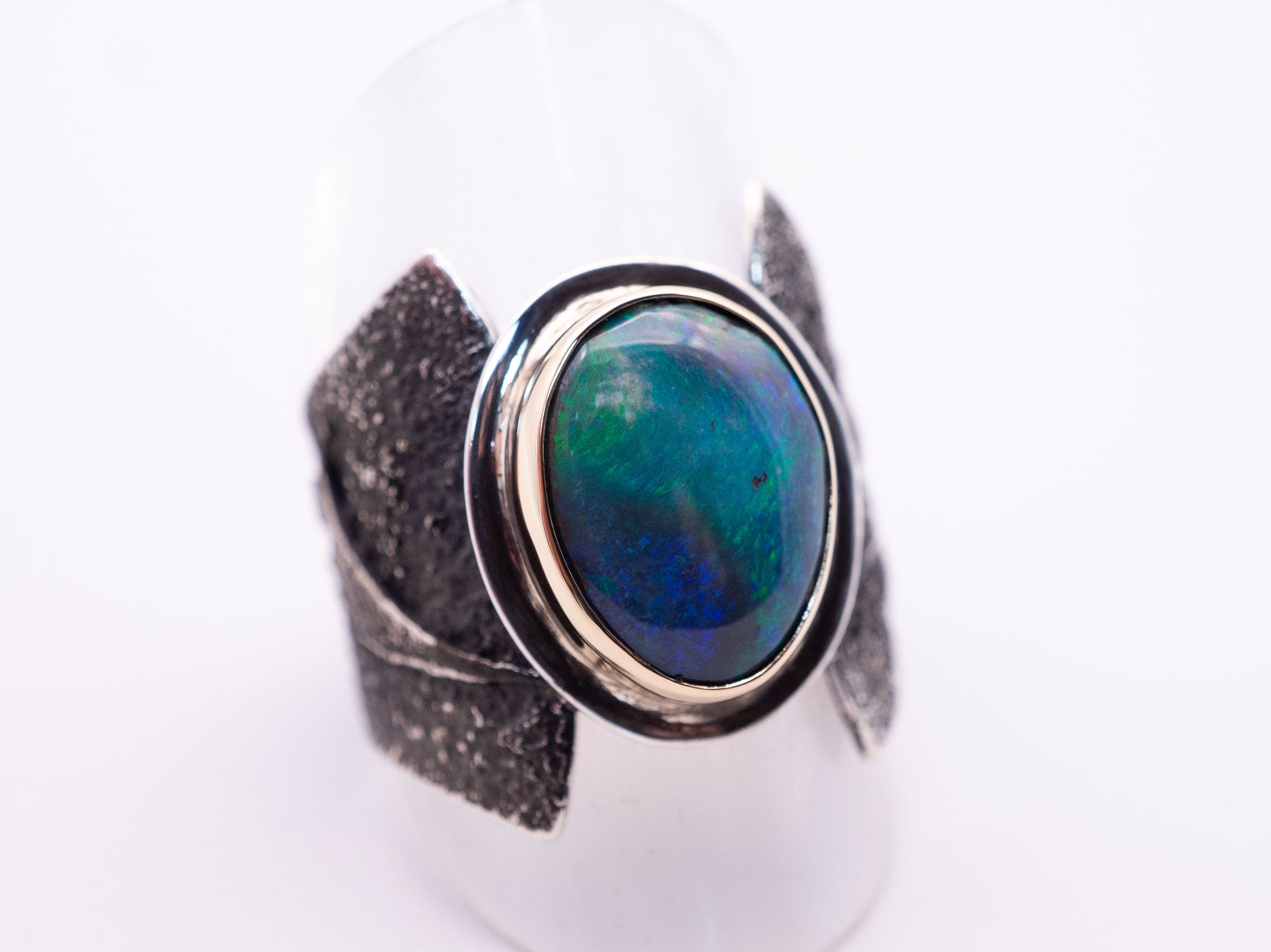 The Riftstone Ring | Abstract Lightning Ridge Opal ring