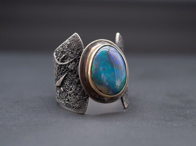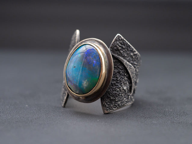 Australian Opal · 14K Gold · Textured Silver