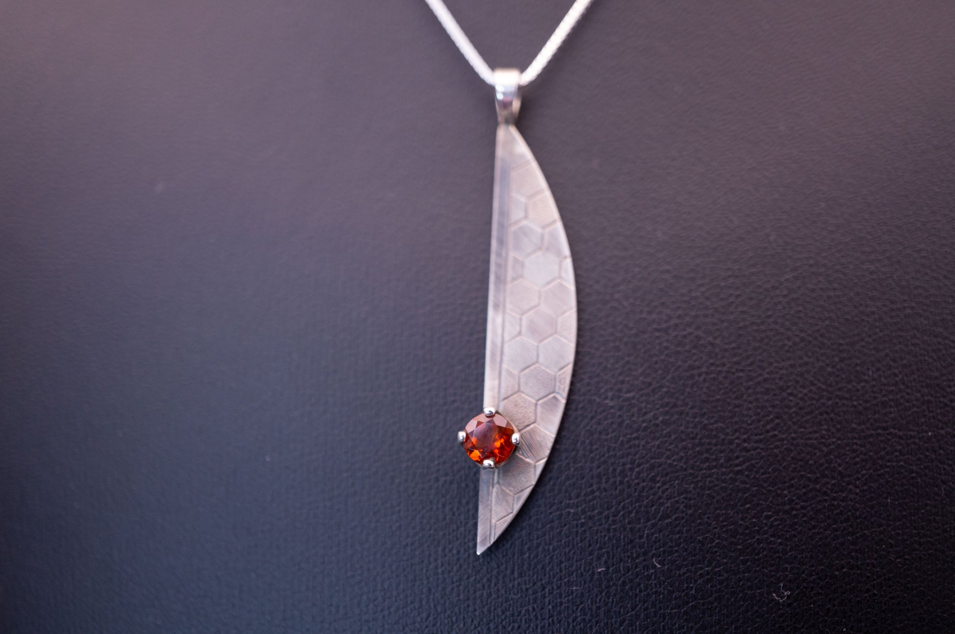 Ignite your inner flame with this silver pendant, meticulously hand-engraved and adorned with a fire citrine that glows with the fierce energy of a sun-kissed ember. The pendant, a synergy of artistry and the earth's splendor, brings a touch of radiance to any ensemble, symbolizing vitality and creativity. Its intricate engravings capture the essence of handcrafted elegance, making it a unique treasure.