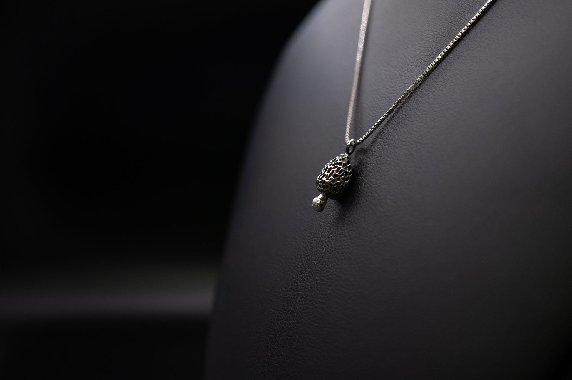 Merging our deep affection for mycology with our love of creating beautiful jewelry. These amazing little morel pendants are the latest release in our new mushroom series! This pendant is an homage to the harmony found in nature; we hope that it brings that harmony into your life.
