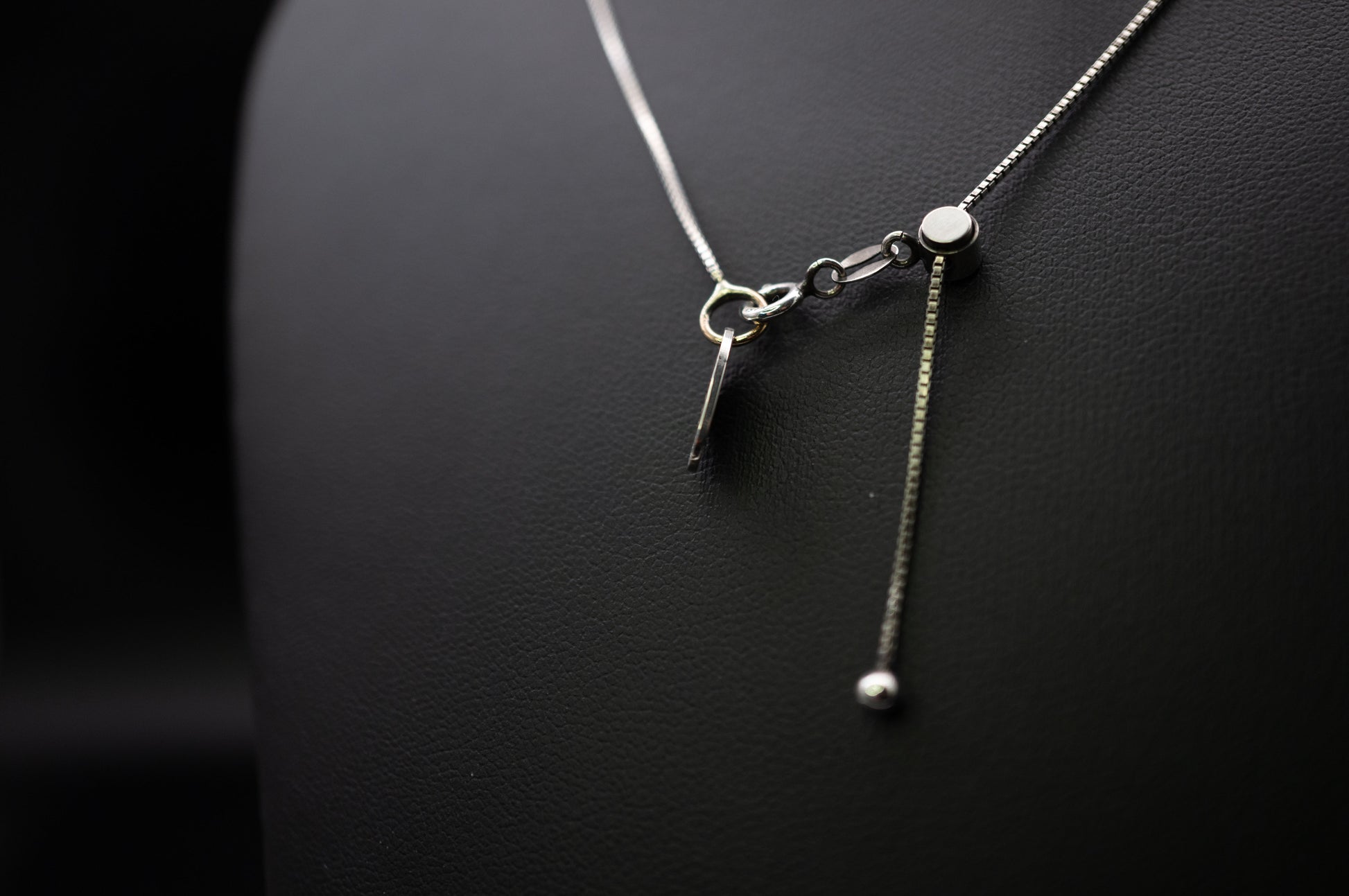 Chain: 22” Sterling Silver Adjustable box chain 0.08 mm