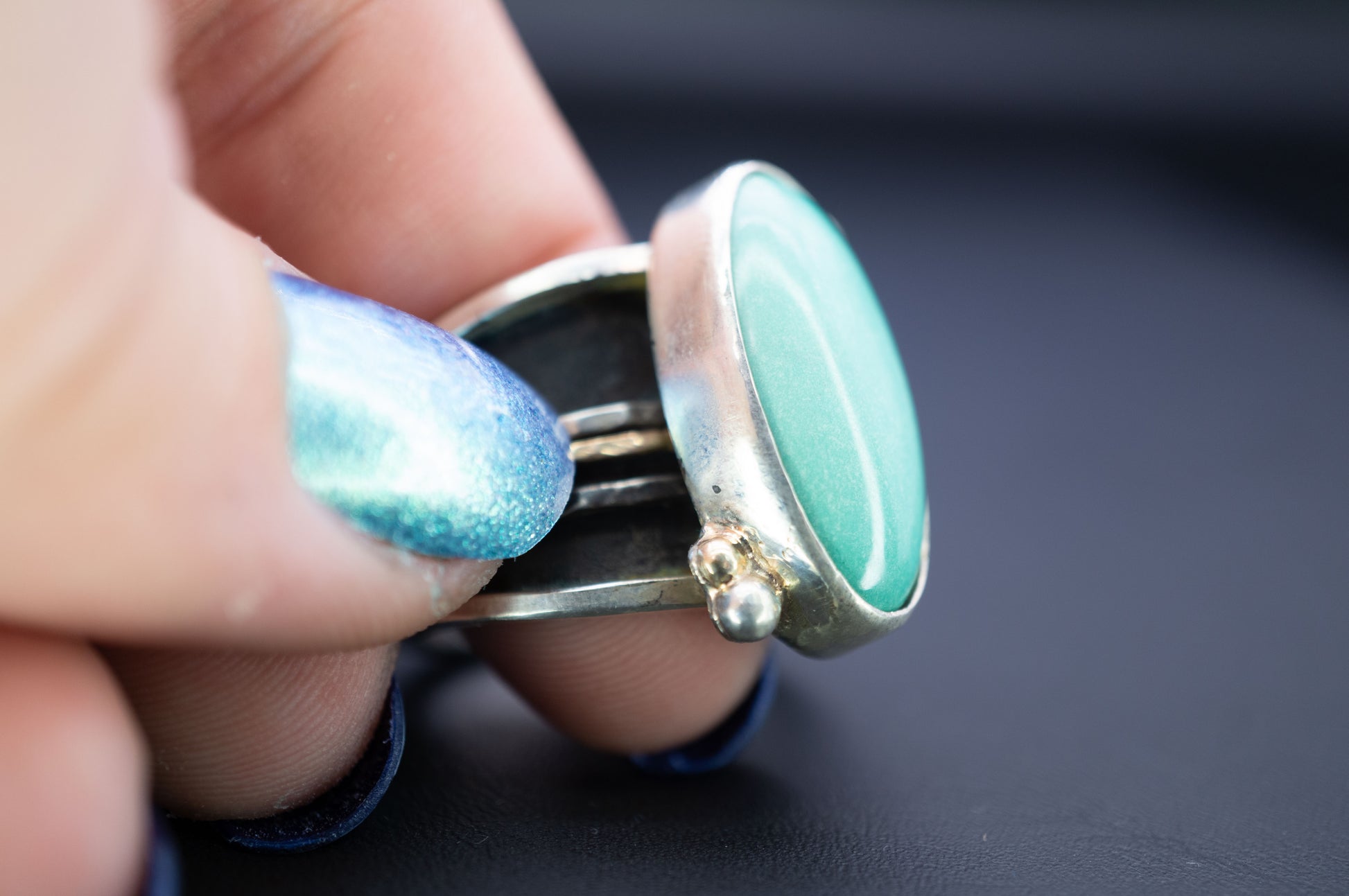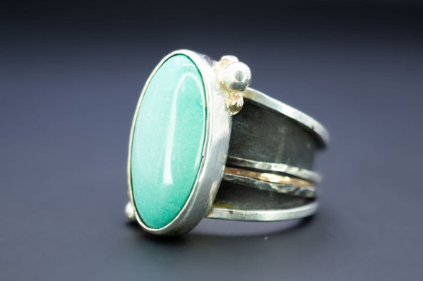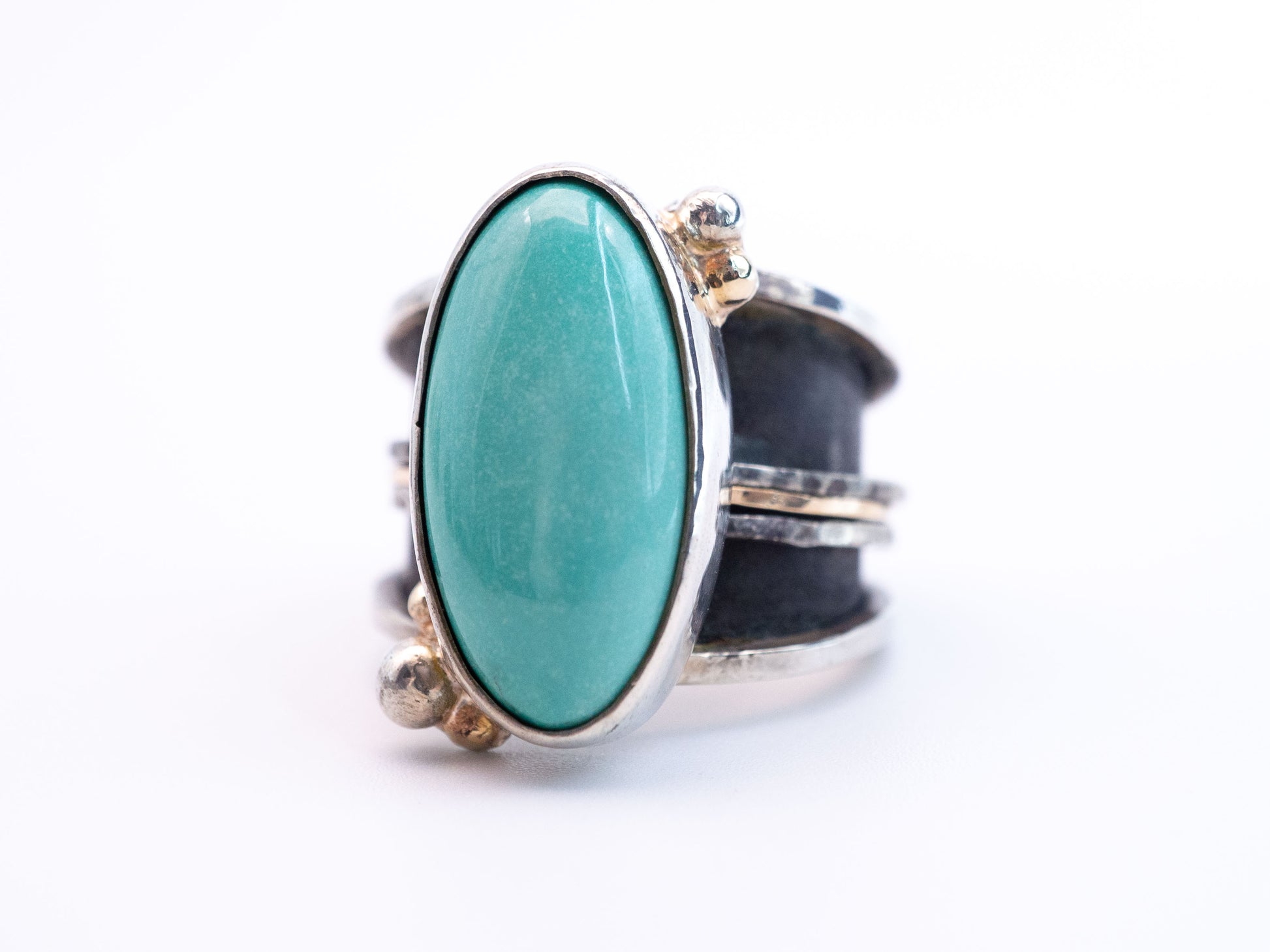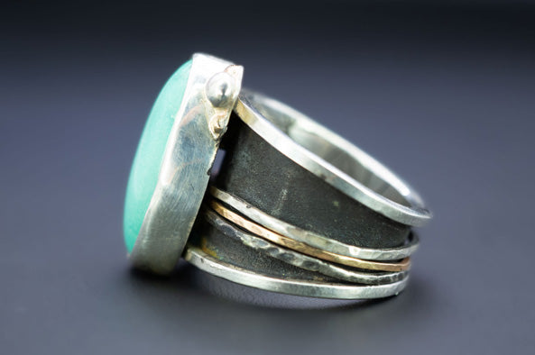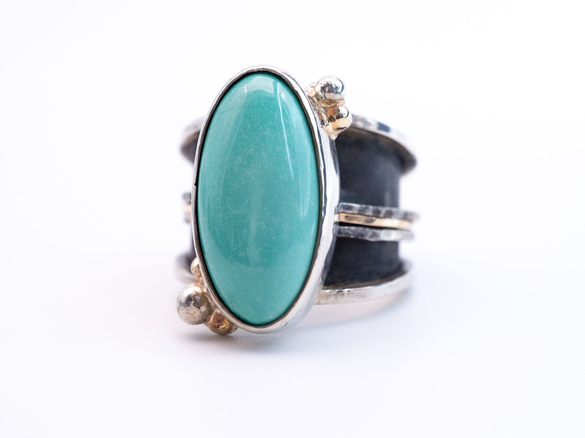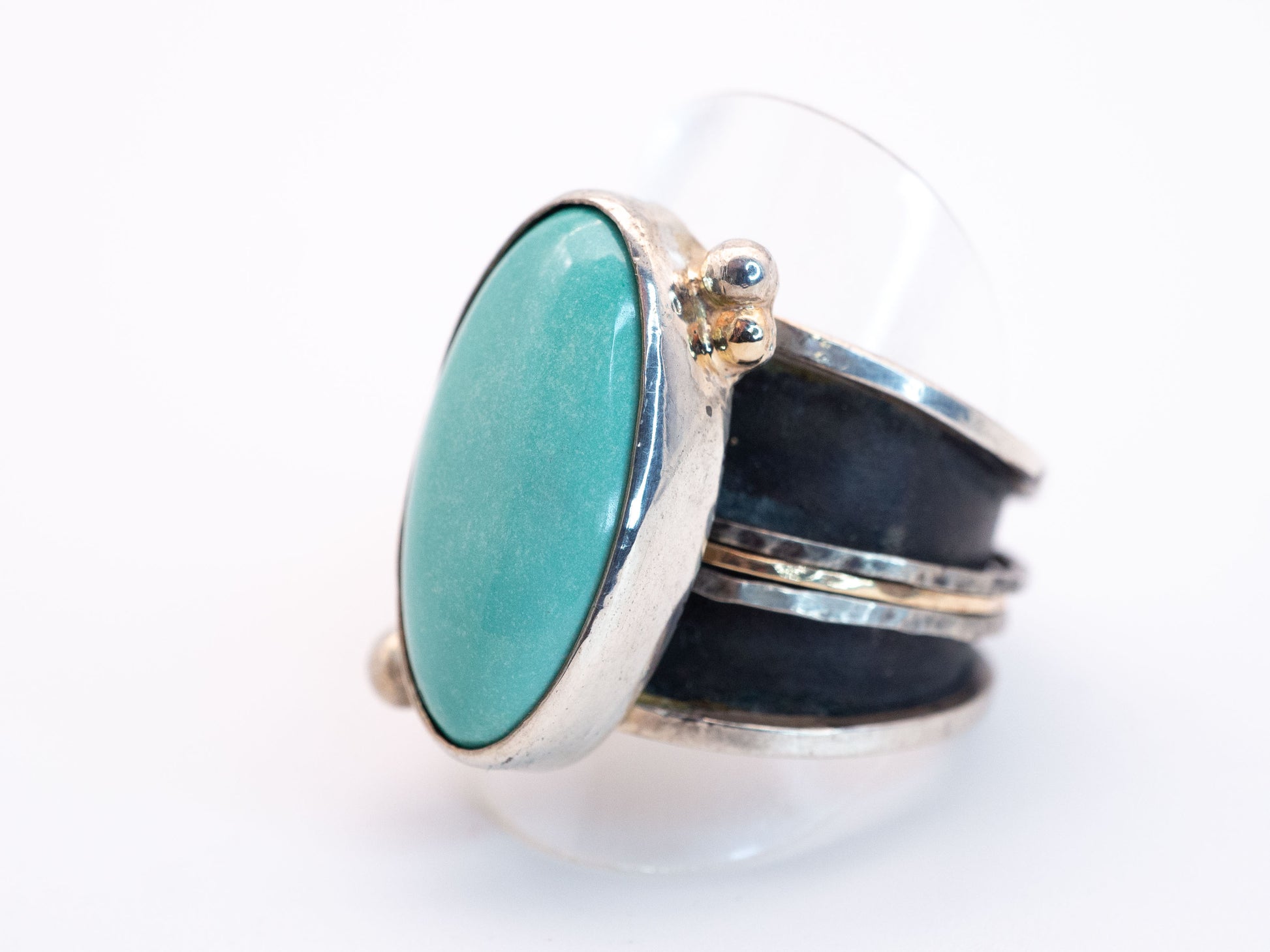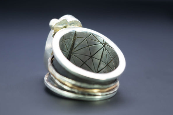 The triad of bands flowing around this spinner ring are a great daily reminder of your own “flow” state. Allowing yourself to quiet your inner critic and centering yourself in your own consciousness and creativity.