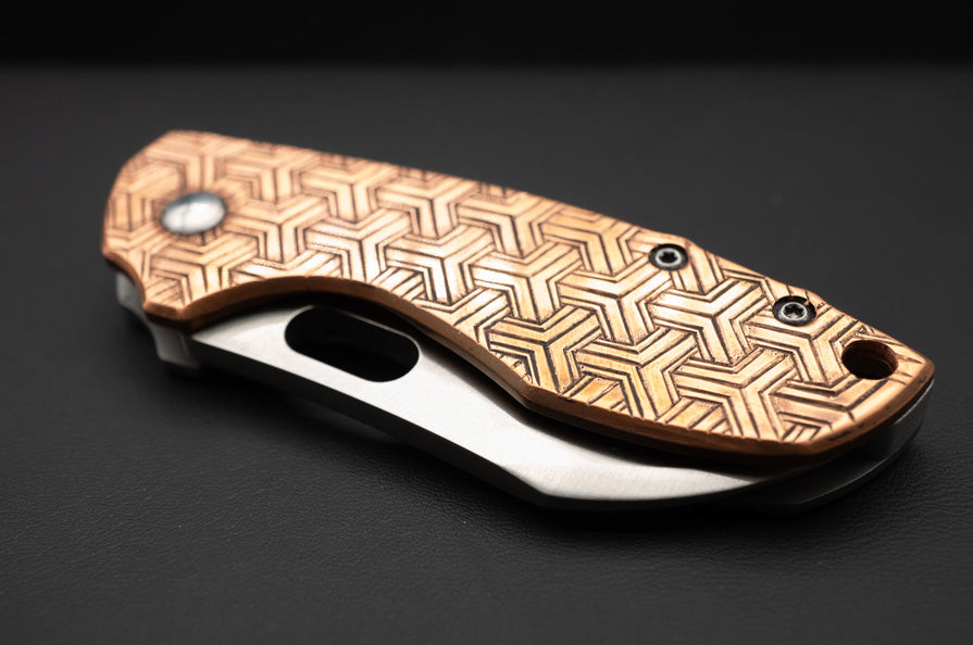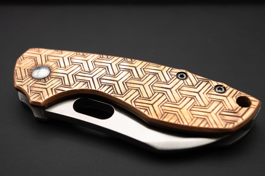 This wonderful CRKT knife is engraved with a stunning geometric pattern. The perfect gift for someone that loves a quality knife that is uniquely one of a kind.